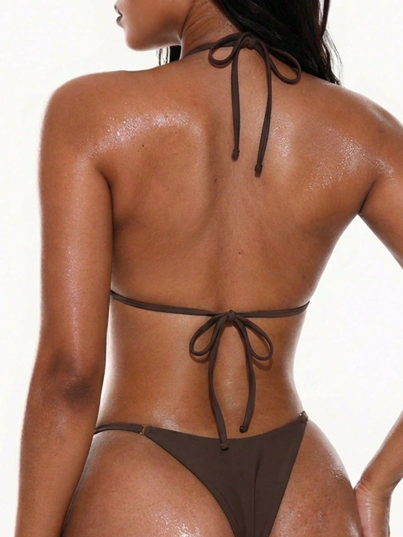 Sexy Minimalist Solid Tie Front Two Piece Bikini Set$32.70 USD$61.00 USD