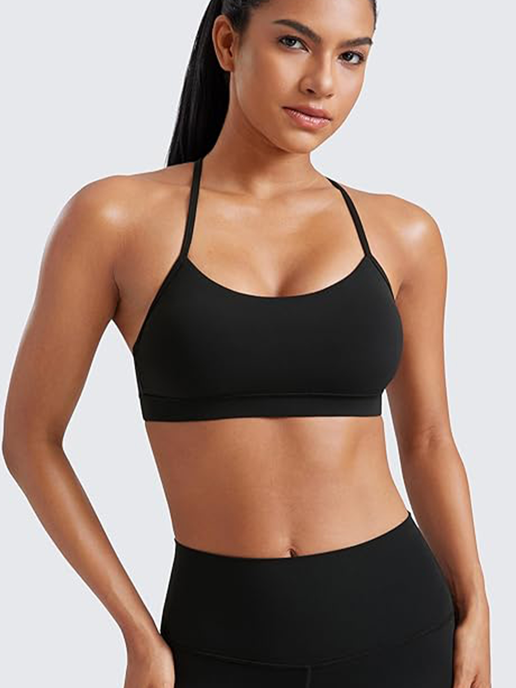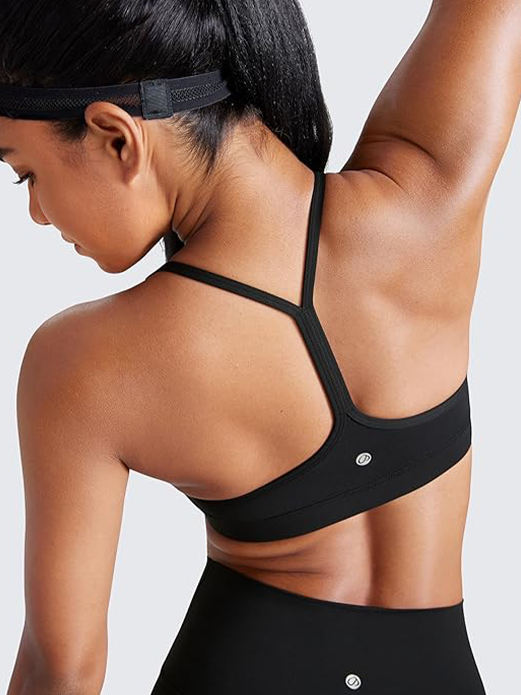 Racerback Spaghetti Straps: Y-back racerback design with thin spaghetti straps for full range of movement.
